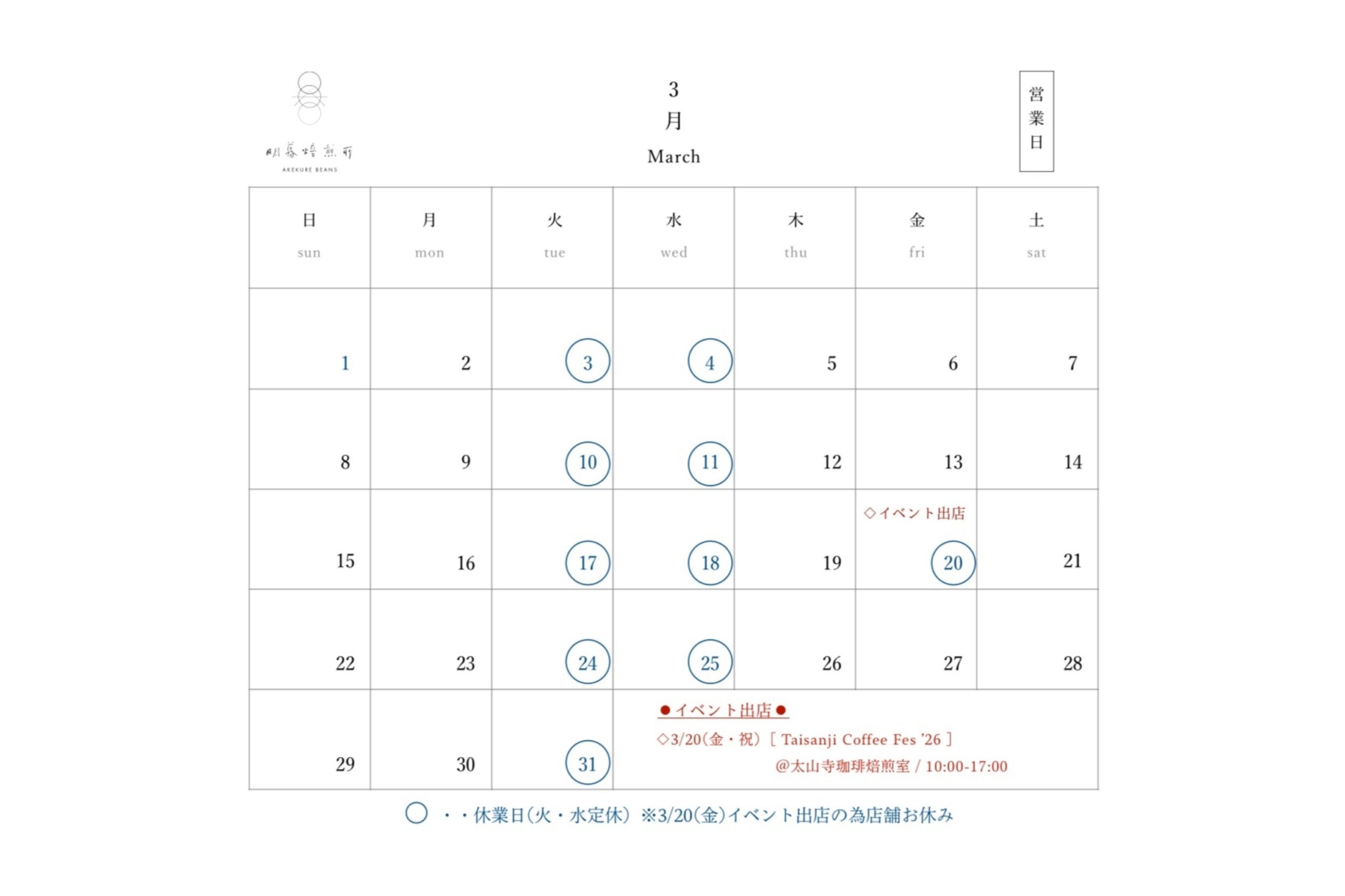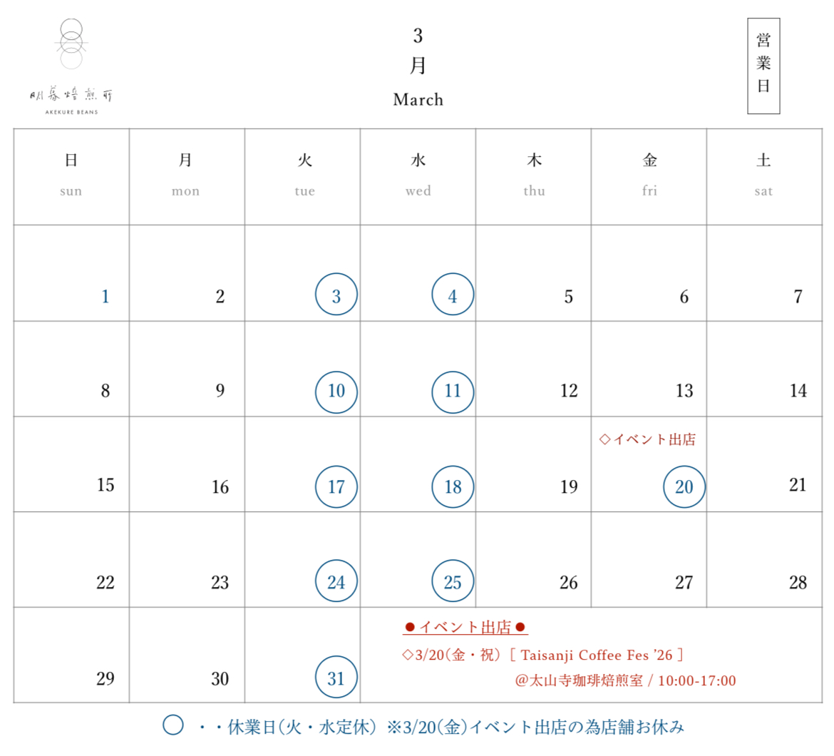 さて3月の予定ですが、春を迎えて今年最初のイベントは「Taisanji Coffee Fes’26」に出店させて頂きます!